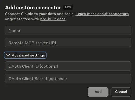 - Present a UI to users that allows them to enter these details, after registering an OAuth client themselves (e.g., through a configuration interface hosted by the server).